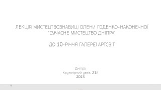 ♦ Лекція Олени Годенко-Наконечної “Сучасне мистецтво Дніпра”.