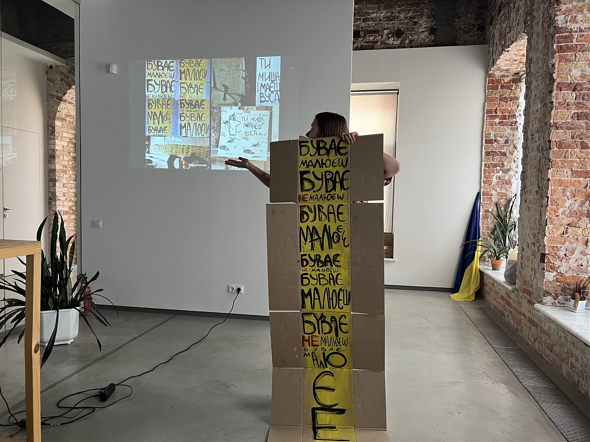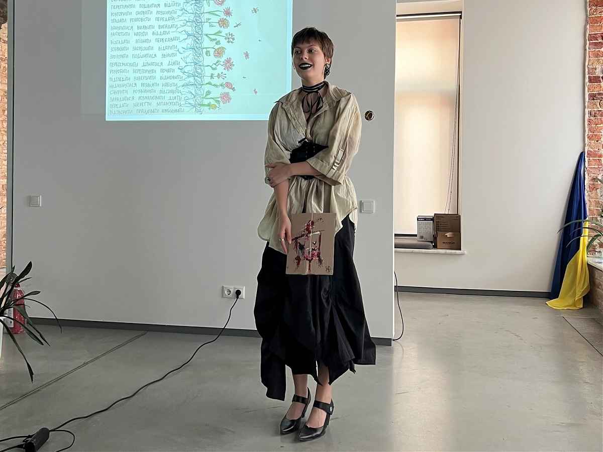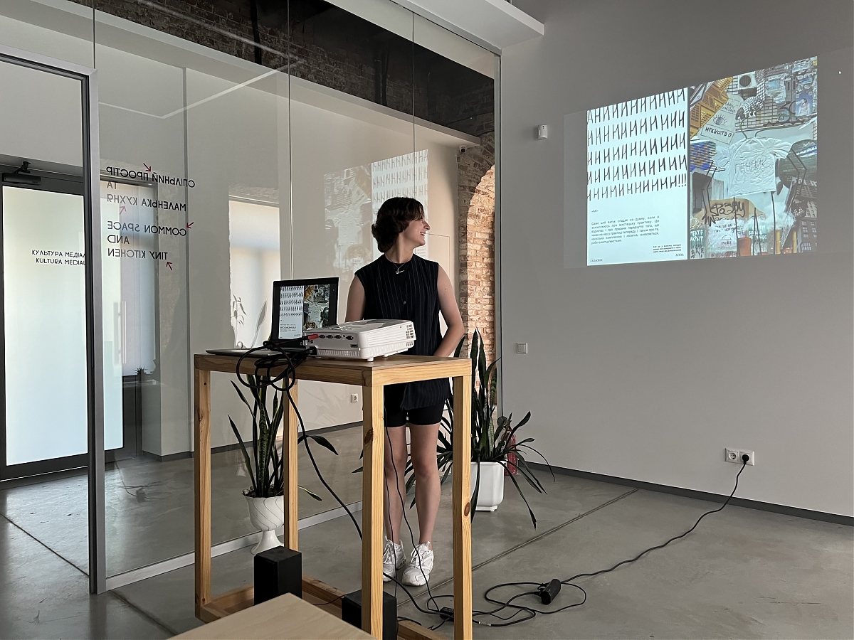 — мисткиня Olia Fedorova, яка свою лекцію присвятила темі пошуку можливостей для творчої самореалізації: художниця розповіла резидентам/-кам як подаватися на резиденції та де шукати гранти, про важливість концепцій до своїх робіт і як зробити цікаве портфоліо або CV, а ще поділилася своїми лайфгаками в написанні заявок і вказала на головні помилки початківців;