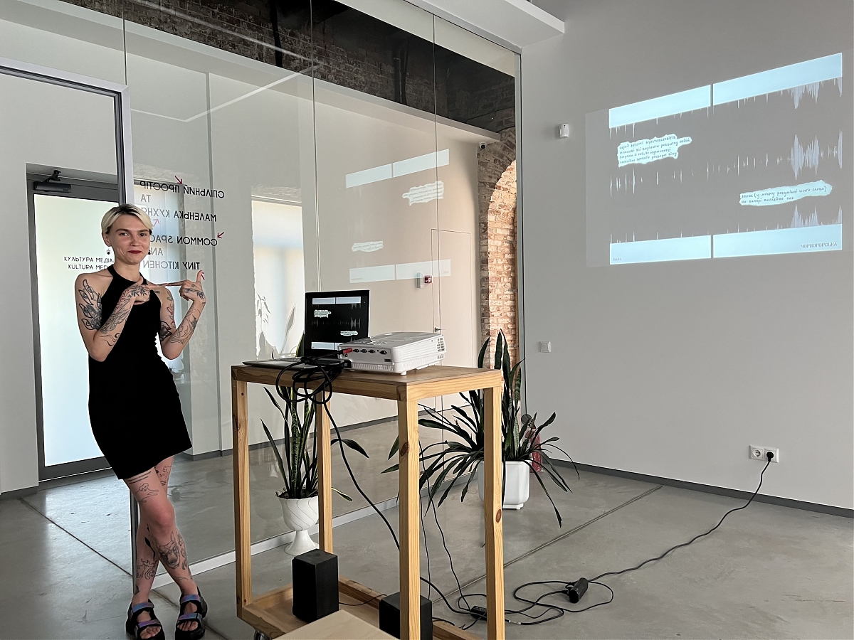— художниця, співорганізаторка Центру Солідарності Solidarny Dom Kultury "Słonecznik" [Соняшник] в Музеї сучасного мистецтва у Варшаві, Юлія Кривич: вона розповідала нашим учасникам/-цям про можливості на прикладі освіти в Польщі — формальні й неформальні, про різні академії мистецтв та культурні інституції, де шукати освітні програми, як на них подаватися і особливості написання таких заявок;
