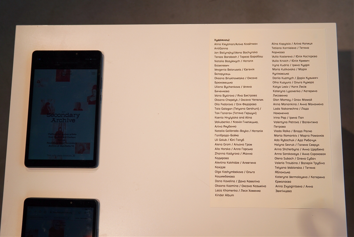 Secondary Archive містить перевірену та систематизовану інформацію про художниць трьох різних поколінь. Наразі на платформі вдалося зібрати близько 500 текстових висловлювань мисткинь з Польщі, України, Чехії, Угорщини, Словаччини, Білорусі, а також Албанії, Косово та Сербії.