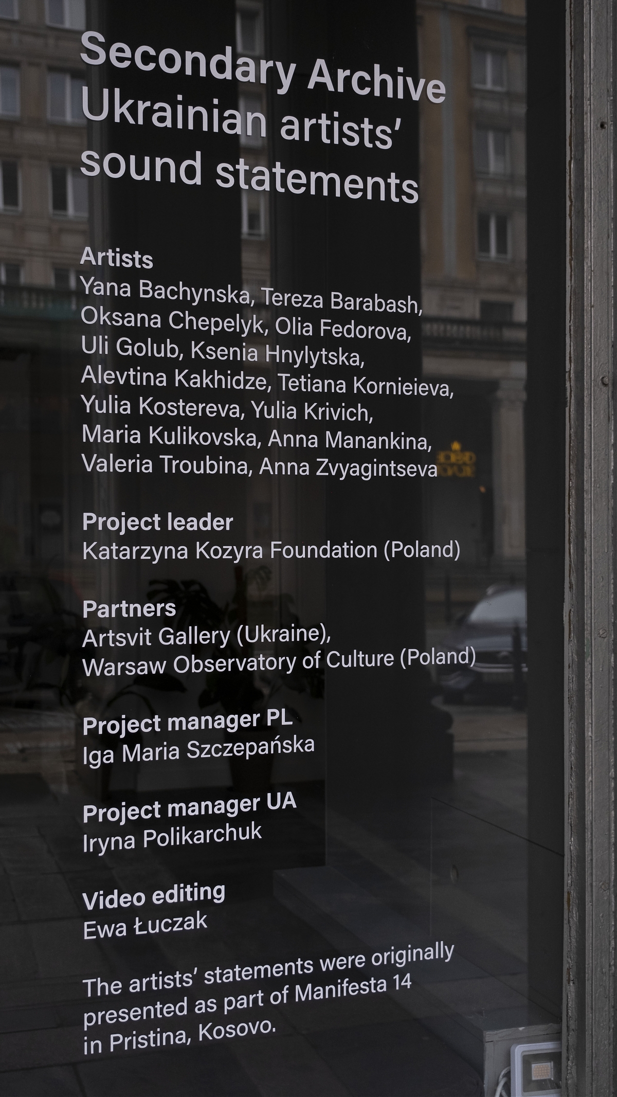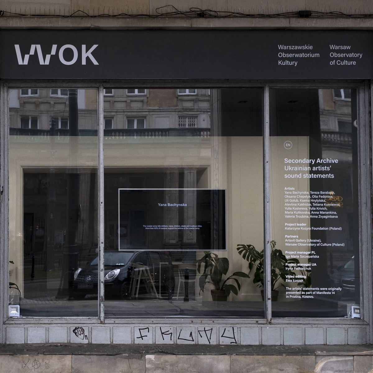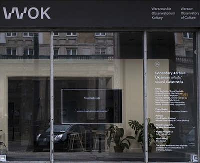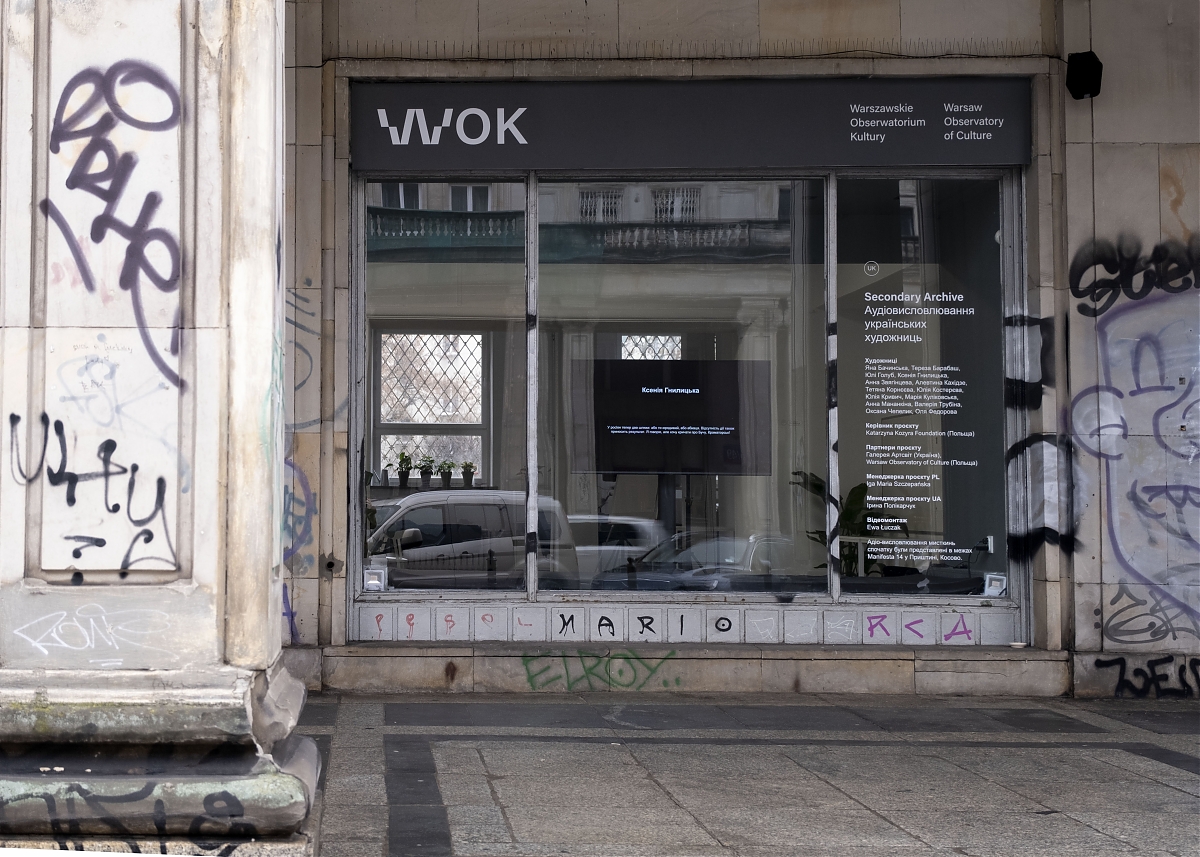 У вітрині Варшавської обсерваторії культури відбудеться демонстрація проєкту “Secondary Archive – Аудіовисловлювання українських художниць”, який триватиме до 5 березня. Інсталяцію можна побачити та почути з вулиці Marszałkowska 34/50.