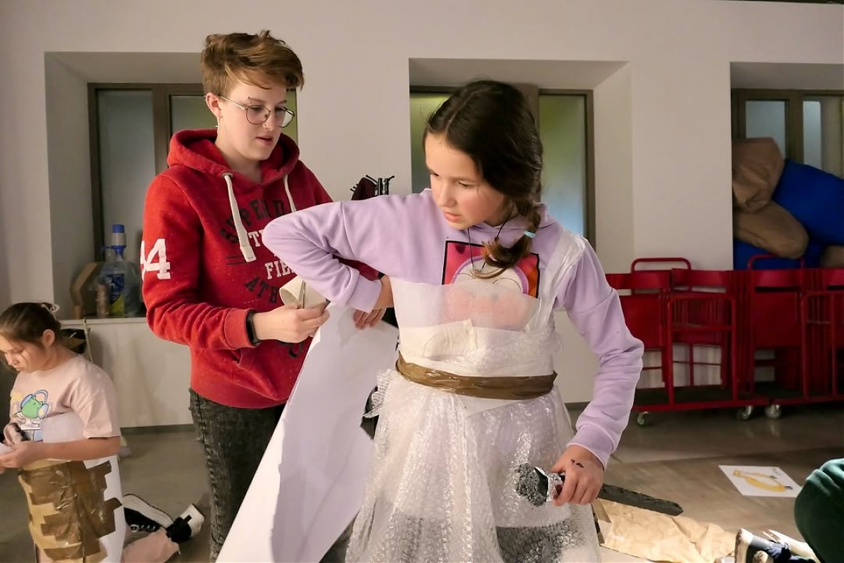 Як лише за допомогою крафтового паперу, коробок і фарб побудувати декорації чи з вовни й тканин створити ляльку, написати сценарій вистави, накласти грим, розробити реквізит і костюми — так, діти стануть справжніми майстрами з виготовлення ляльок, декораторами, костюмерами, режисерами, театральними художниками та інженерами власної сцени.